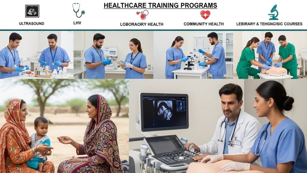 The AMG Health Department is dedicated to building skilled healthcare professionals who can serve communities with knowledge, care, and confidence. At AMG E-Commerce & Health Sciences Academy, we offer high-quality training in a variety of health-related programs, including Ultrasound, LHV, Community Health, Medical Technician Courses, and other healthcare diplomas